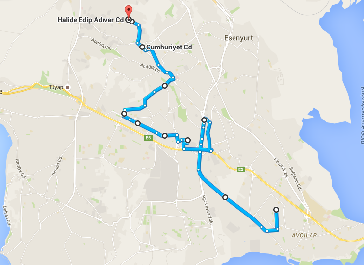 Bu durum güzergâh bilgisi için başvurulan sitelerin kodlarında zaman içinde meydana gelen değişikliklerden kaynaklanmaktadır.