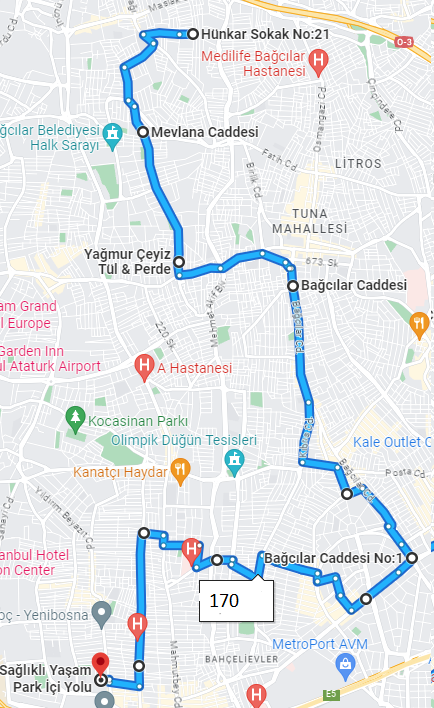 Bu durum güzergâh bilgisi için başvurulan sitelerin kodlarında zaman içinde meydana gelen değişikliklerden kaynaklanmaktadır.