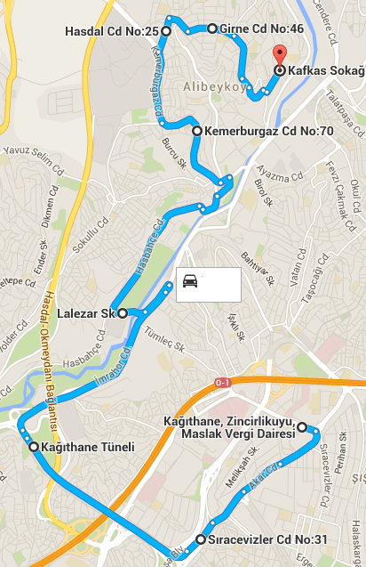 ÇİFTE HAVUZLAR CAD. - AKAR CAD. - KAĞITHANE TÜNELİ -