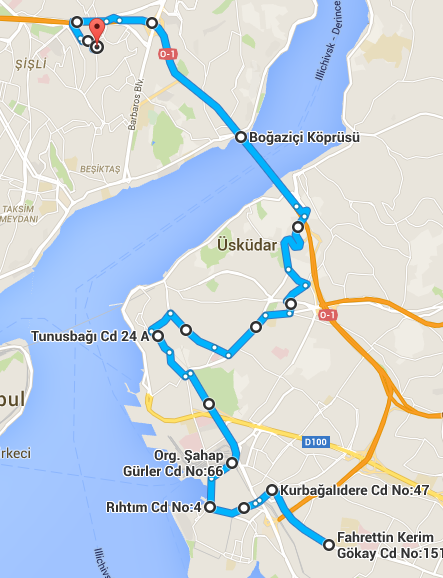 Bu durum güzergâh bilgisi için başvurulan sitelerin kodlarında zaman içinde meydana gelen değişikliklerden kaynaklanmaktadır.