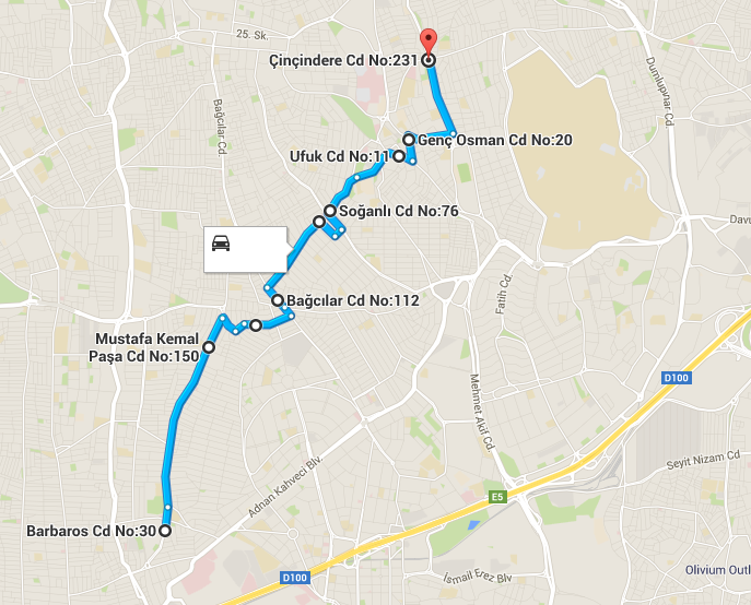 Bu durum güzergâh bilgisi için başvurulan sitelerin kodlarında zaman içinde meydana gelen değişikliklerden kaynaklanmaktadır.