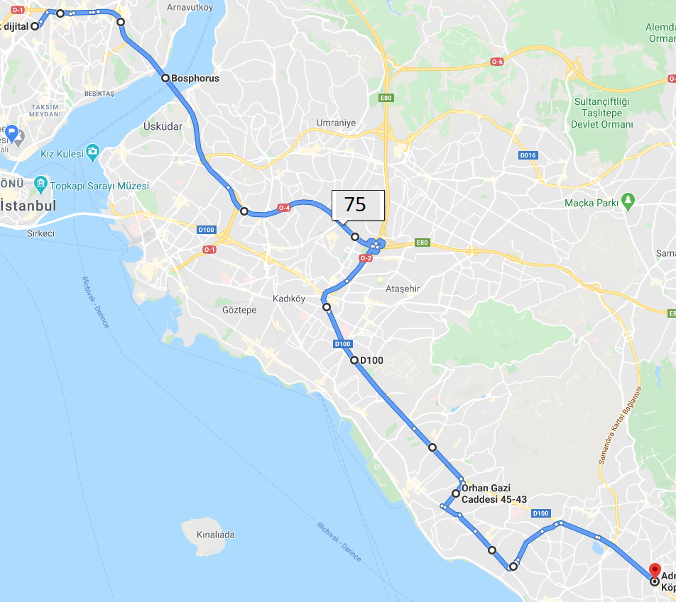 KOZYATAĞI - E5 - BOSTANCI - MALTEPE KÖPRÜSÜ -