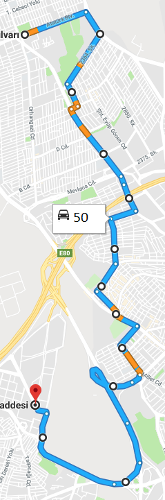 Bu durum güzergâh bilgisi için başvurulan sitelerin kodlarında zaman içinde meydana gelen değişikliklerden kaynaklanmaktadır.