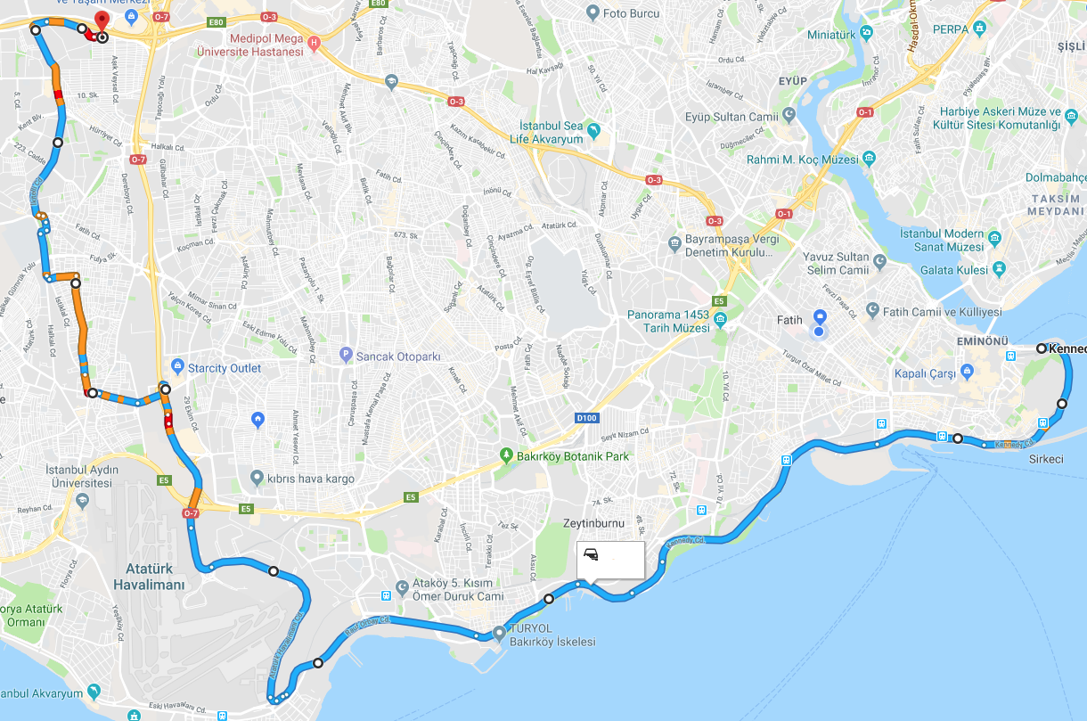 AKŞAM: SİRKECİ - SAHİL YOLU - ATATÜRK HAVALİMANI CD. -