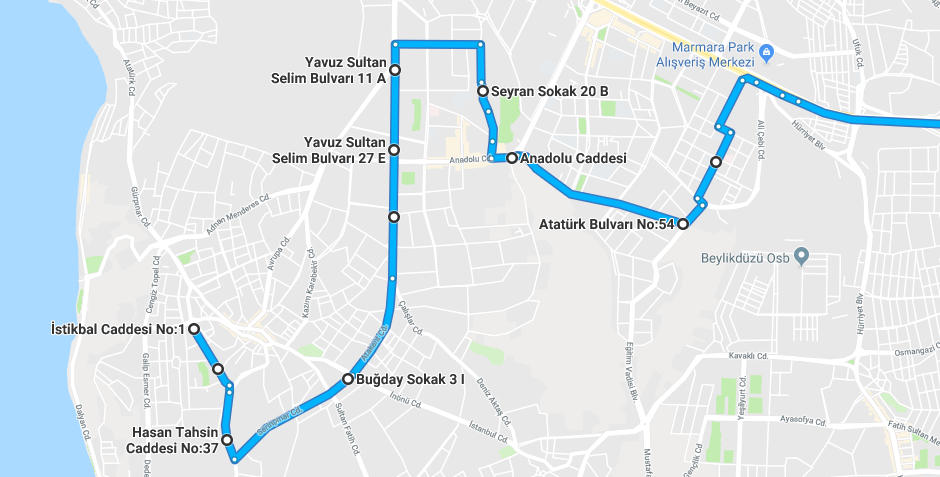 Bu durum güzergâh bilgisi için başvurulan sitelerin kodlarında zaman içinde meydana gelen değişikliklerden kaynaklanmaktadır.