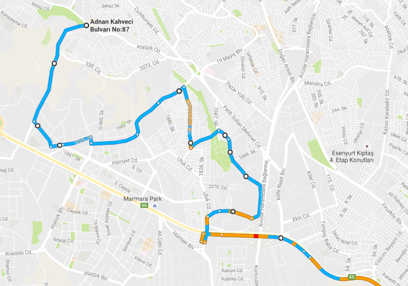 Bu durum güzergâh bilgisi için başvurulan sitelerin kodlarında zaman içinde meydana gelen değişikliklerden kaynaklanmaktadır.