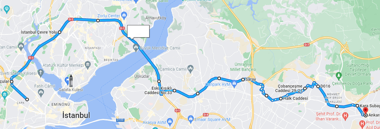Bu durum güzergâh bilgisi için başvurulan sitelerin kodlarında zaman içinde meydana gelen değişikliklerden kaynaklanmaktadır.