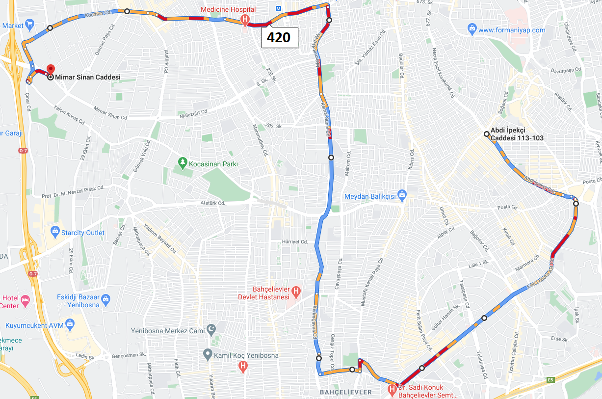 Bu durum güzergâh bilgisi için başvurulan sitelerin kodlarında zaman içinde meydana gelen değişikliklerden kaynaklanmaktadır.