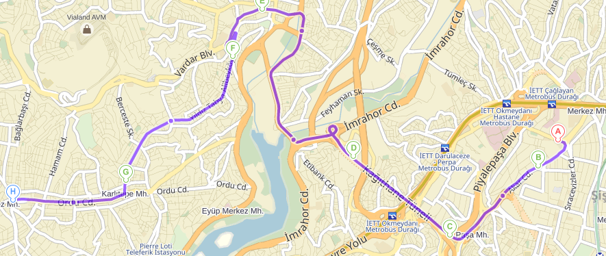 Online Güzergâhlar ile Resim Güzergâhları arasında nadiren farklılıklar olabilmektedir.