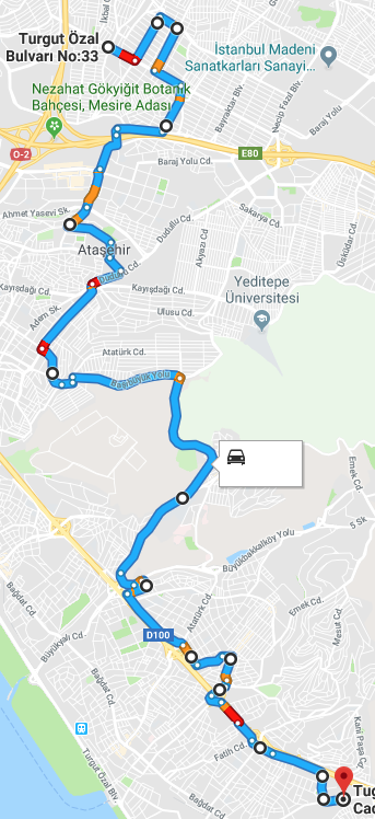 Bu durum güzergâh bilgisi için başvurulan sitelerin kodlarında zaman içinde meydana gelen değişikliklerden kaynaklanmaktadır.