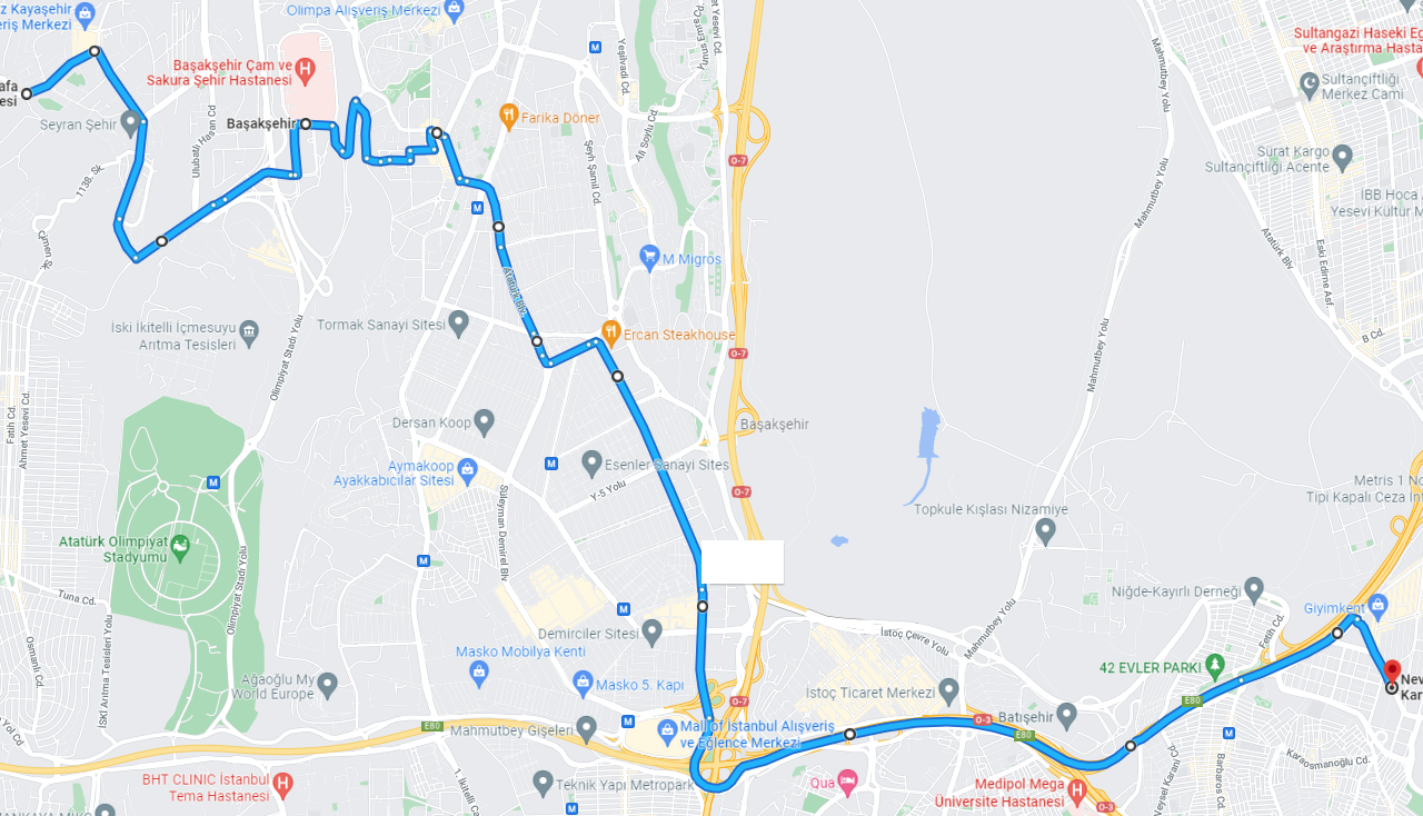 KAYAŞEHİR BLV - GÖKDEMİR CD - ŞEHİR HASTANESİ -