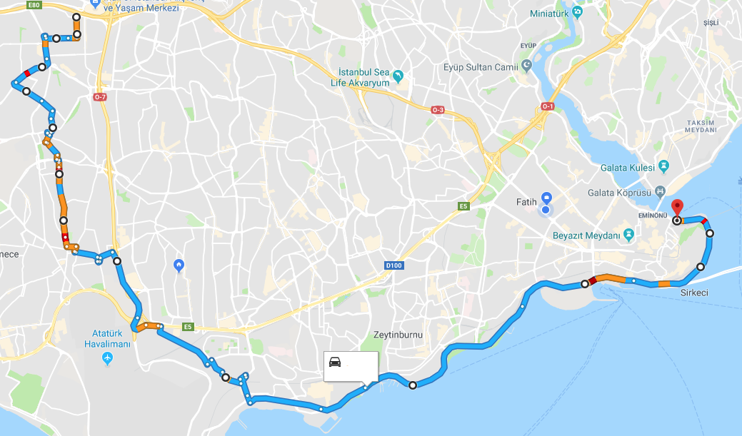 AKŞAM: SİRKECİ - SAHİL YOLU - ATATÜRK HAVALİMANI CD. -