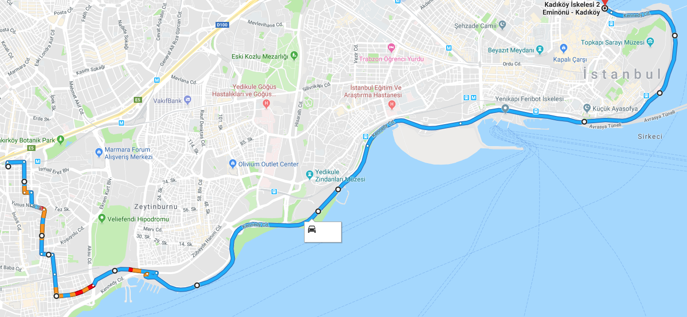 PELİNLİ SK. - TERAKKİ CD. - PARKÖNÜ CD. - İSTANBUL CD. - KENNEDY CD - EMİNÖNÜ
