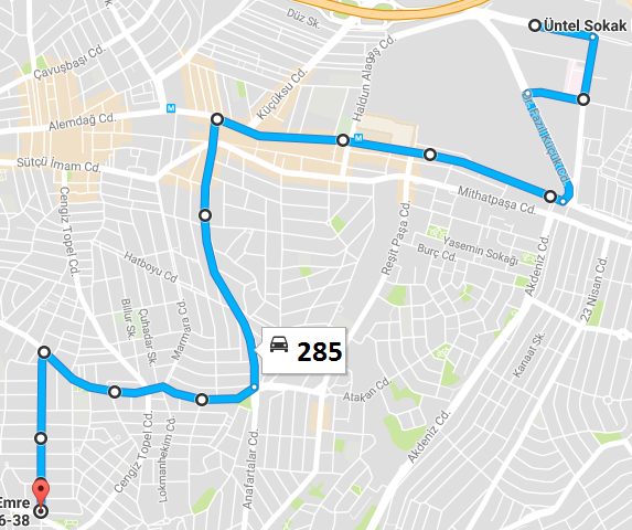Bu durum güzergâh bilgisi için başvurulan sitelerin kodlarında zaman içinde meydana gelen değişikliklerden kaynaklanmaktadır.