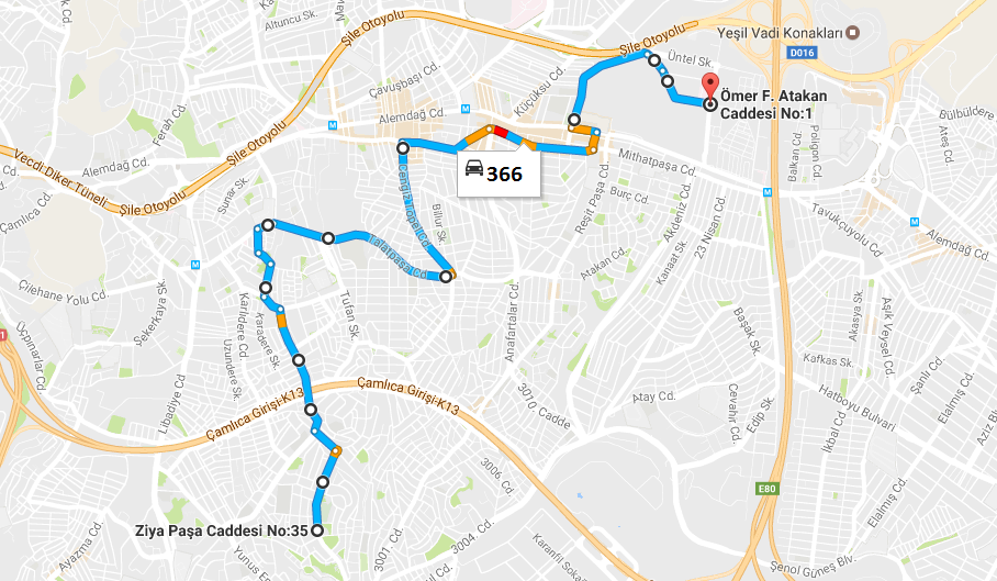 Bu durum güzergâh bilgisi için başvurulan sitelerin kodlarında zaman içinde meydana gelen değişikliklerden kaynaklanmaktadır.